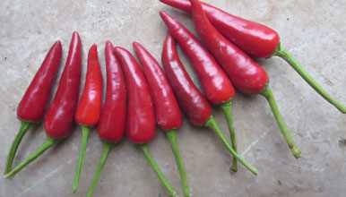 中辣型辣椒 子彈頭朝天椒為中辣型辣椒,辣味較為香濃。 |