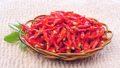 辣度濃厚 紅野山椒的辣度很高,屬于猛辣型干辣椒,是各大湘菜、川菜的座上賓。 |
